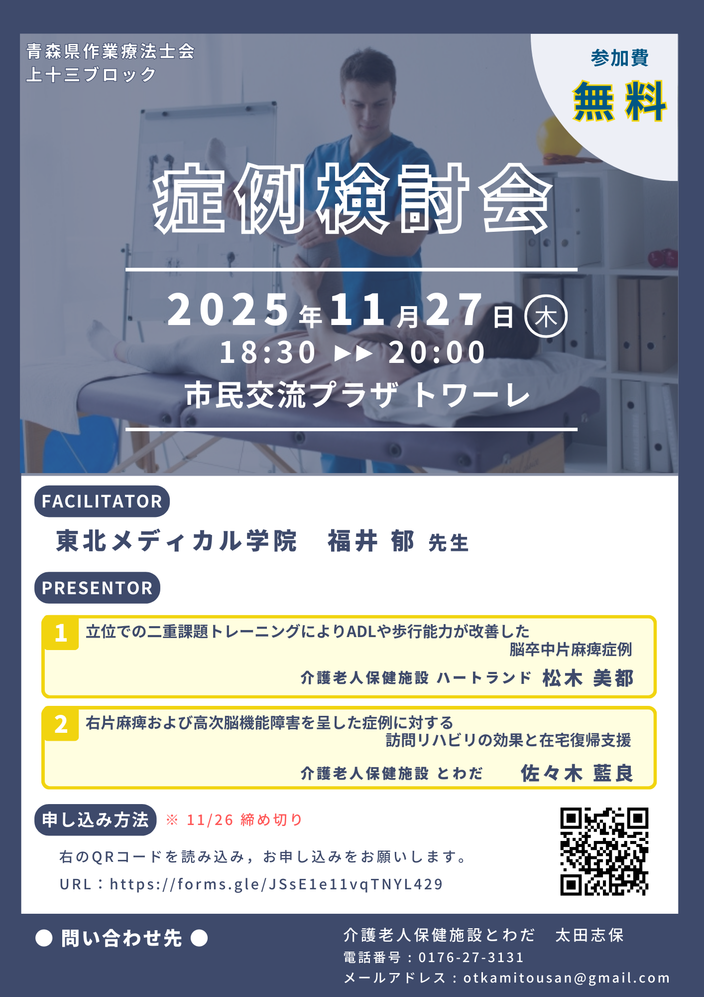 2025年度運転と地域移動支援研修 「運転したい」と言われた時に クライアントに応えられるOTになろう ~青森県作業療法士会みんなでつくる自動車運転再開支援~開催のお知らせ 日付: 2025/11/22(土) 時間: 9:00~10:30 詳細PDF»